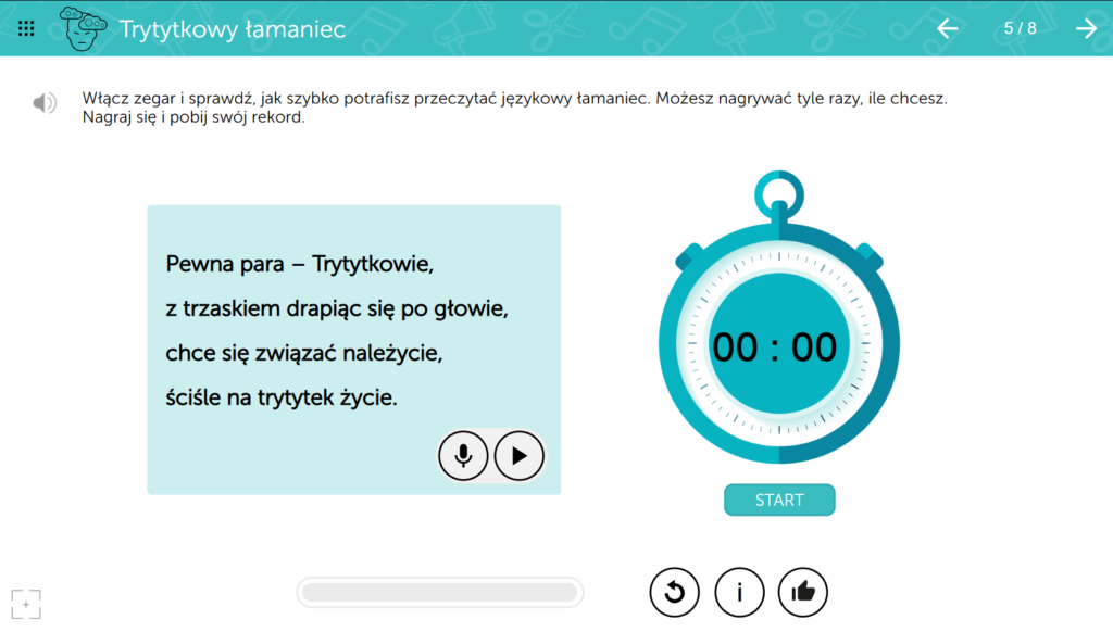 - pracy z tekstem (w tym: rozumienia, śledzenia kontekstu, pisowni i wybranych elementów wiedzy o języku),