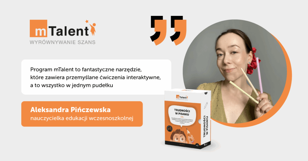 Zestaw „mTalent – Trudności w pisaniu” stanowi ogromne ułatwienie w codziennej pracy – opinia Aleksandry Pińczewskiej, nauczycielki wczesnoszkolnej